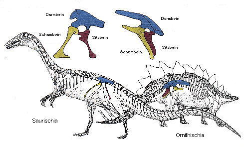 Bei den Ornithischia (Vogelbeckensauriern) liegt ein Teil des Schambeins neben dem Sitzbein. Ebenso sind die Hüftknochen heutiger Vögeln angeordnet.